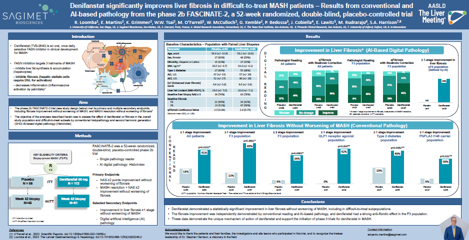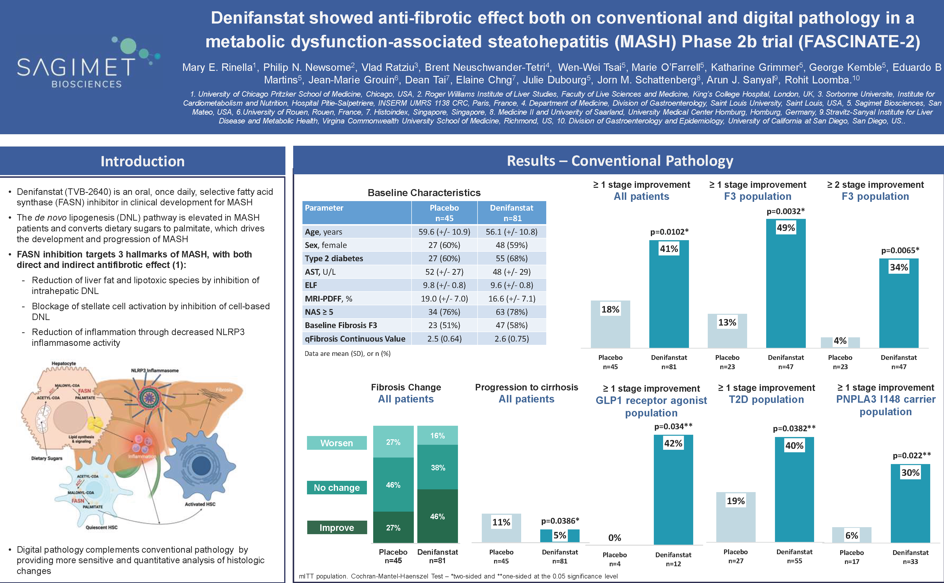 AI-Based Digital Pathology Shows that Denifanstat Improves Multiple Parameters of Fibrosis and Reduces Progression to Cirrhosis in MASH patients with F2/F3